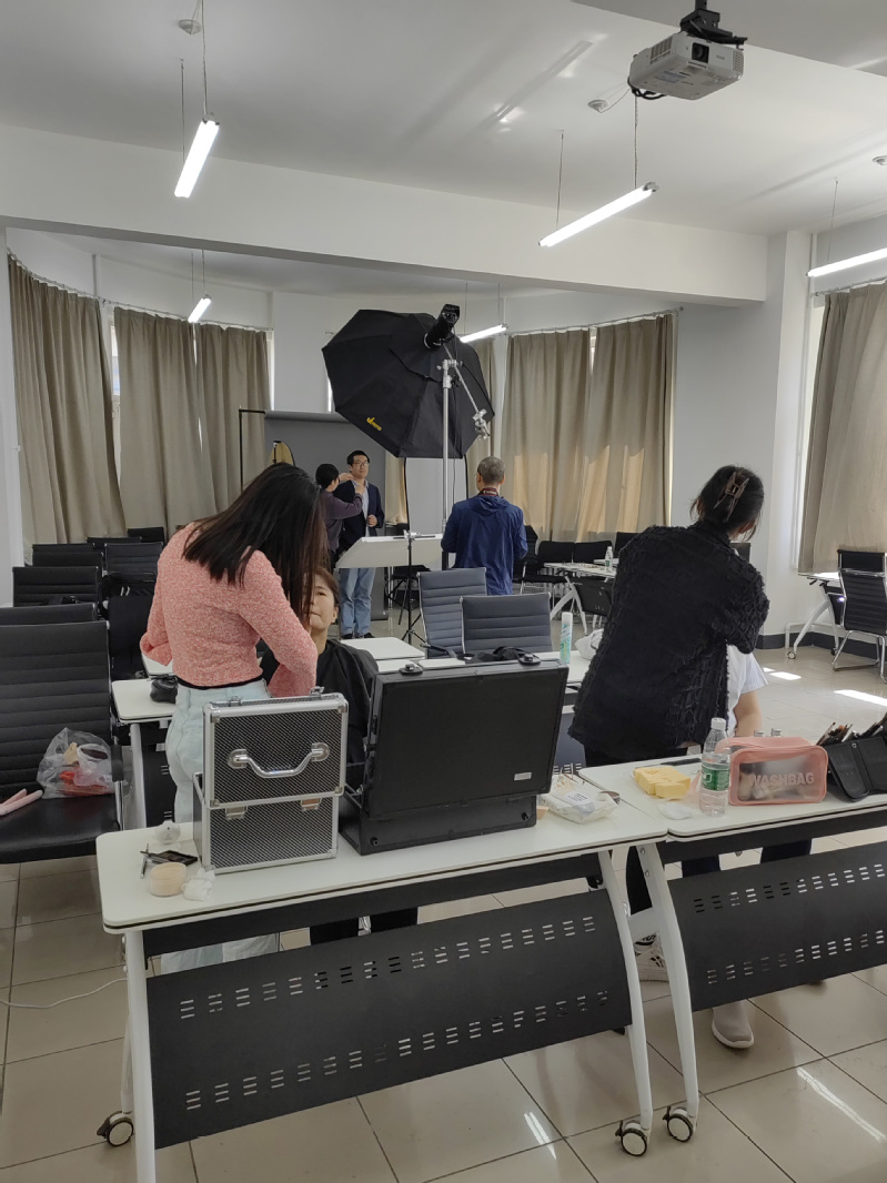 为保障高质量、高效率拍摄,工会特邀专业团队为教工们进行化妆和造型设计。在拍摄现场,每位老师都妆容精致、神采奕奕,在摄影师的指导下,纷纷摆出优雅的拍摄姿势。活动全程秩序井然,拍摄氛围轻松愉悦。