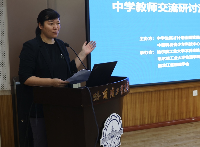 赵雅琴经理在致辞中向与会人员简要介绍了公司发展概况,重点介绍了公司本科人才培养模式的改革举措和成效,阐述了哈工大在夯实数理基础、工程领域基础和交叉创新能力培养等方面所做的创新探索。她表示,希望通过本次交流研讨活动,能够加强大学和高中在物理教育中的衔接合作,共同培养拔尖创新人才。