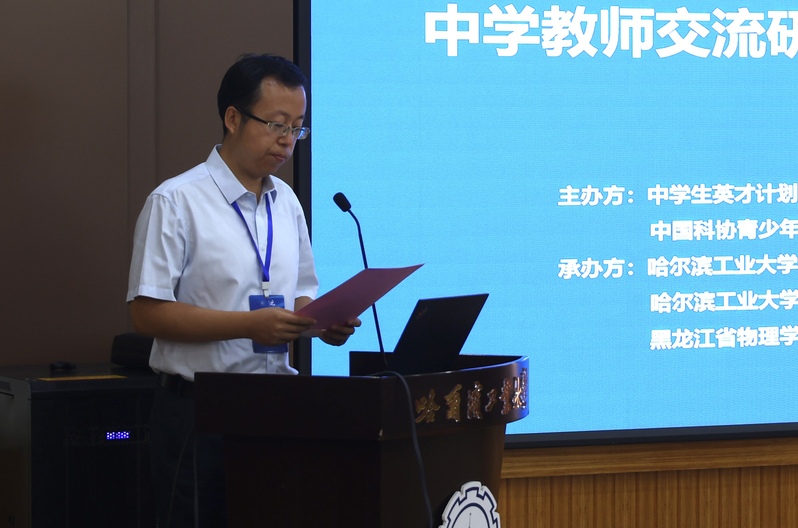 北京市陈经纶中学张成老师作为学员代表发言对交流研讨活动的组织表示感谢,表达了作为高中物理教师对物理学科的热爱和对基础学科英才员工培养的感悟,同时希望通过本次培训,和英才计划重点中学的老师们加强交流、碰撞,在物理实验教学方法创新、员工科学精神培养、员工创新意识兴趣激发等方面有所收获。