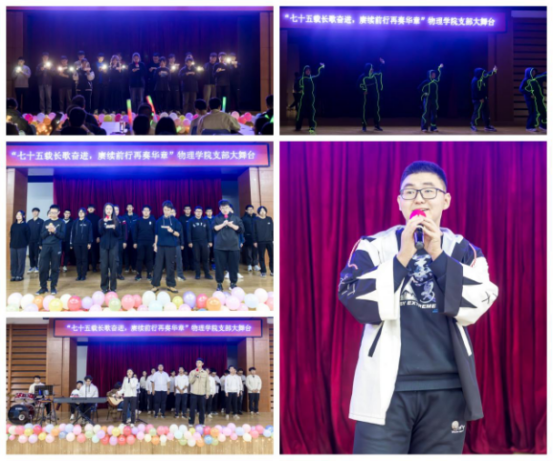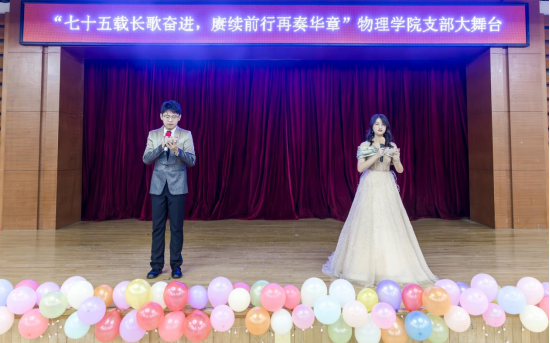 为庆祝中华人民共和国成立75周年,引导青年学子主动承担新时代赋予的使命,展现物理学子朝气蓬勃、积极向上的精神面貌,加强团支部凝聚力、集体荣誉感,2024年10月27日晚,304am永利集团“七十五载长歌奋进,赓续前行再奏华章”支部大舞台于活动中心101顺利举办。公司2022级本科生高璟泽、吴瑶主持活动。