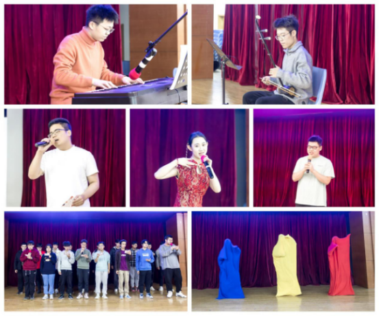 本次支部大舞台在辅导员老师与员工会同学们的合唱《青苹果乐园》后正式开始。各年级团支部上报的15个节目分别在“家国”“成长”和“奋进”三个篇章中进行。第一篇章“家国”中,24硕1班团支部庞闳竞同学首先带来了一曲古韵悠长而战意盎然的古筝演奏《战台风》。接着2311501团支部带来合唱《稻香》,欢快的旋律满载着大家对故乡的深情。24硕1班团支部与24硕3班团支部的合唱《中国军魂》《我和我的祖国》中,青年们用真挚激昂的歌声表达了对祖国母亲的深切热爱和对中国军人的敬仰之情。第二篇章“成长”中,2311102团支部的晏熙来、高一帆带来的器乐合奏《风居住的街道》、2311501团支部陈小川的独唱《春泥》、24硕1班团支部党磊吉的独唱《修炼爱情》,让我们不禁回想成长路上的酸甜苦辣。而由2311502团支部的合唱《晴天》和24硕3班团支部的王驰、李磊、张景昊三位同学带来的被单舞,展现出成长中的温暖与青年的无限青春活力。随后2211501团支部带来的京剧《夸月娥》,让观众们在明亮而优雅唱腔中,感受了古人的赞美之词。第三篇章“奋进”在2311102团支部的合唱《奇迹再现》中开始,随后2211401团支部苏江龙的独唱《裂缝中的阳光》、24硕2班团支部带来合唱《夜空中最亮的星》与荧光舞,最后2311101团支部的合唱《Counting Stars》唱响了梦想与希望,他们展现了团员青年勤奋进取、攻克难题、勇敢追梦的无怨无悔。