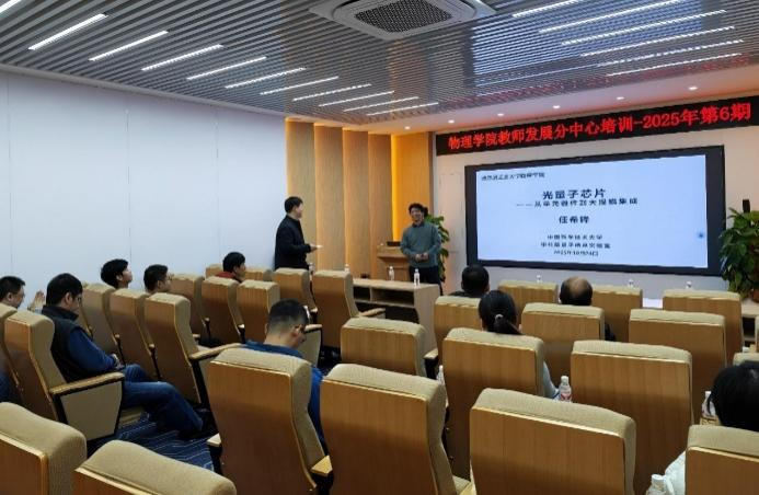 1024日,中国科学技术大学任希锋教授主讲“光量子芯片—从单元器件到大规模集成”研讨培训,介绍集成光量子芯片的优势与三大前沿研究方向,分享将科研前沿融入课堂的实践经验,为相关课程建设注入创新活力。与会教师表示将积极吸收报告精华,推动课程内容与学科发展同步更新。学院将持续组织高水平教学研讨活动,助力教师提升教学创新能力。一系列培训活动涵盖教学改革、技术赋能、学科前沿与人才培养等核心议题,为全院教师提供了丰富的创新思路与实践经验。304am永利集团将持续推进教师专业成长,以高质量教学赋能新时代物理学领军人才培育。